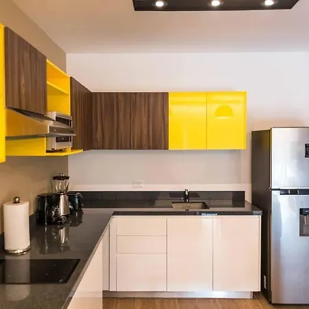 Misafirlerine açık havuz, jakuzi, solaryum gibi olanakları sunan Yellow Condos dairesi Playa del Carmen şehrinde bulunmaktadır. Kool Plaj Kulübü, daireden 800 metre uzaklıkta ve Centro Maya 450 metre uzaklıkta bulunmaktadır.