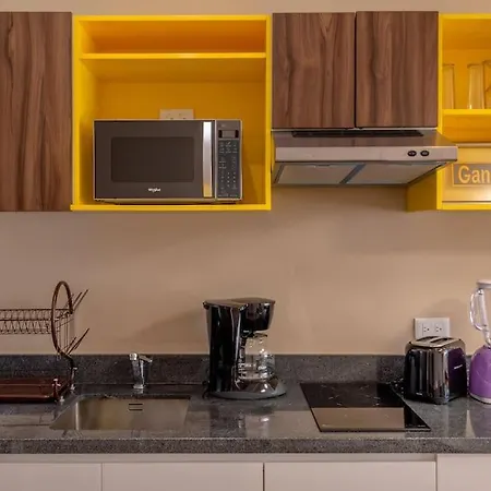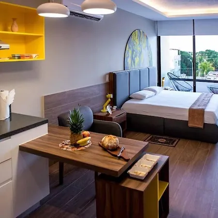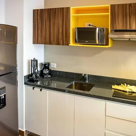 Mutfakta mikrodalga fırın, buzdolabı, cam eşyalar hizmetinize sunulur. Misafirler, Playa del Carmen havalimanından Yellow Condos dairesine arabayla 5 dakikada ulaşabilirler.